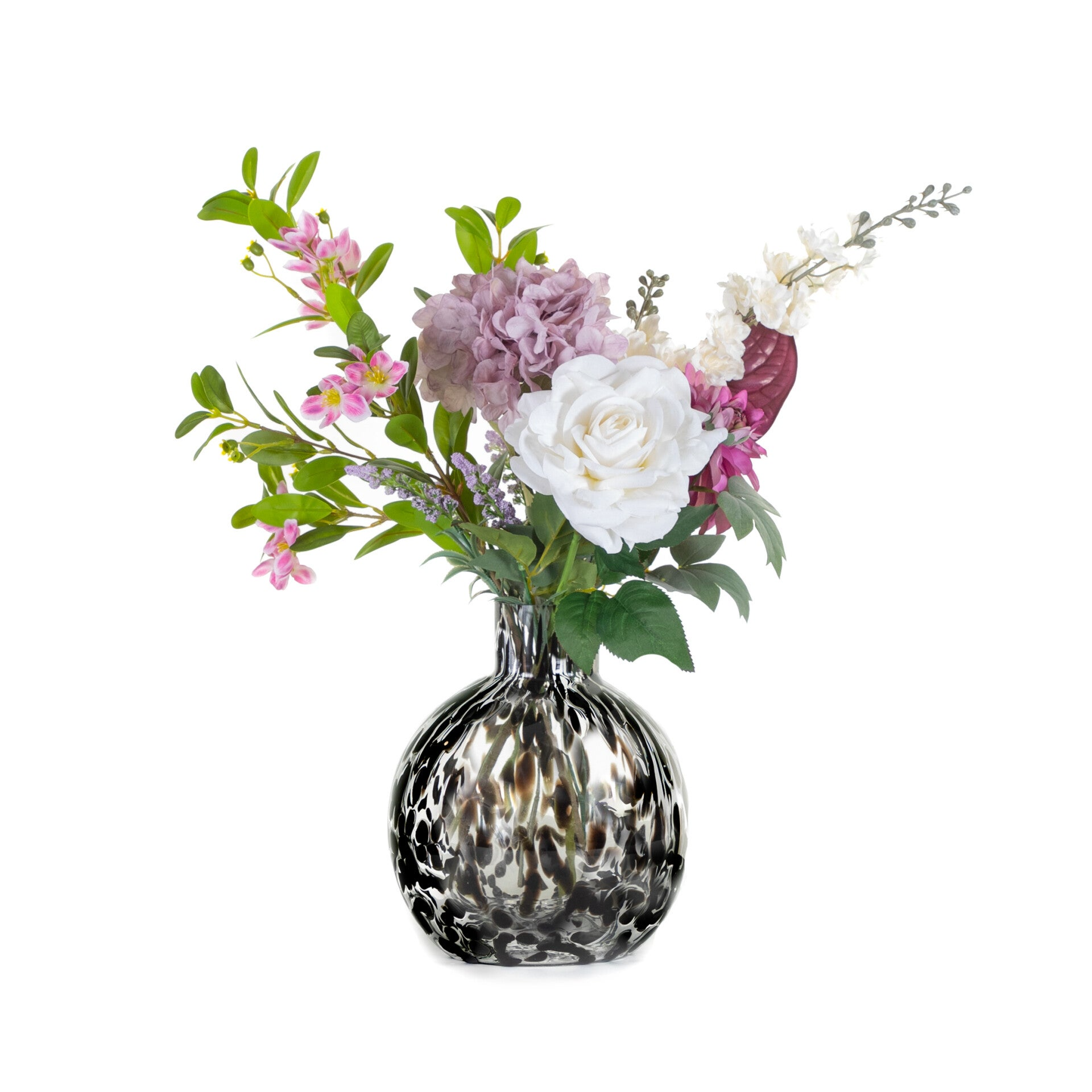 Boeket Grace straalt verfijning uit met een stijlvolle mix van zacht lila, oudroze, wit en frisgroen. De combinatie van een klassieke witte roos, volle hortensia en subtiele bladaccenten maakt dit arrangement tijdloos en charmant. De vormen en kleuren zorgen samen voor een zachte, serene sfeer.