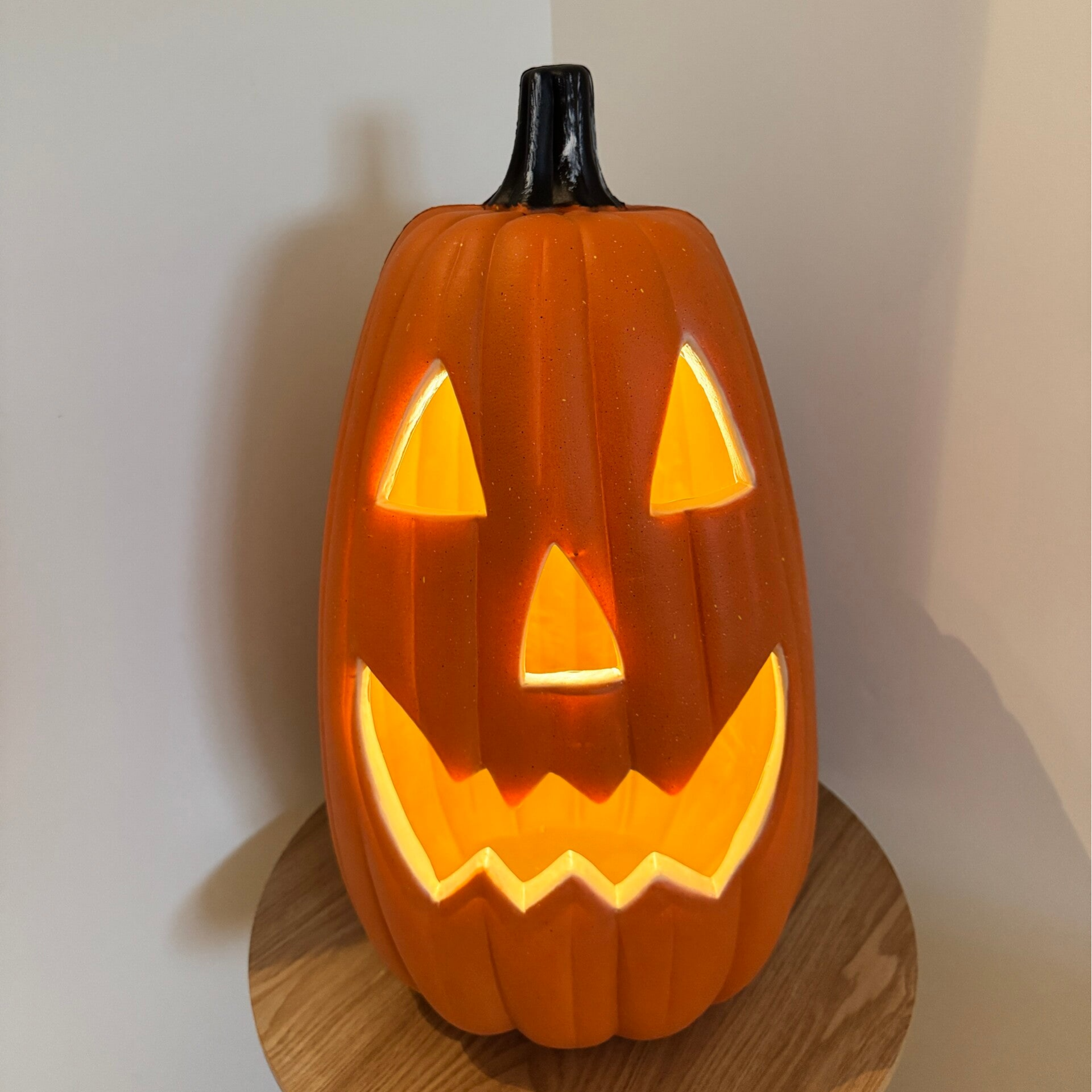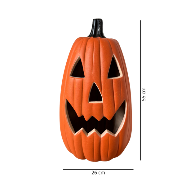 Breng direct een gezellige en griezelige sfeer in huis met deze klassieke Halloween pompoen. De pompoen heeft een uitgesneden gezicht met een vrolijke grijns en je kunt het licht eenvoudig zelf aan- en uitzetten. Perfect als decoratie op tafel, in de vensterbank of bij de voordeur.